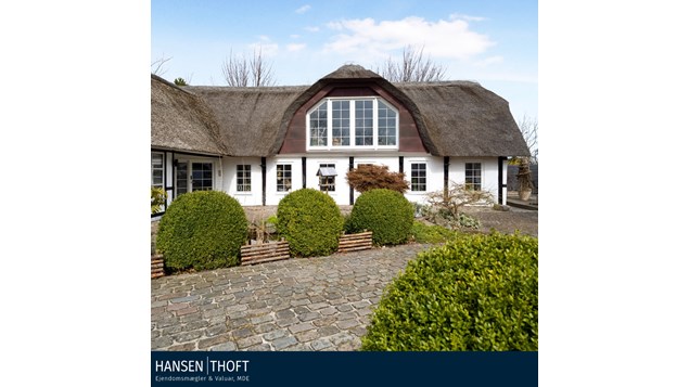 Smukt renoveret villa med stråtag til salg i Egense